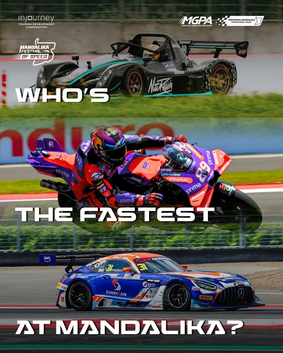 “Kalau dibilang siapa yang tercepat di Mandalika, ya sekarang masih GT3 sih. Berdasarkan data, catatan waktunya emang belum ada yang ngalahin. Tapi setiap kendaraan punya keunggulan masing-masing. MotoGP itu luar biasa di tikungan, Radical juga makin ngedeketin. Justru serunya di situ, kita bisa lihat perbandingan kecepatan dari banyak jenis kendaraan,” jelas Priandhi Satria.